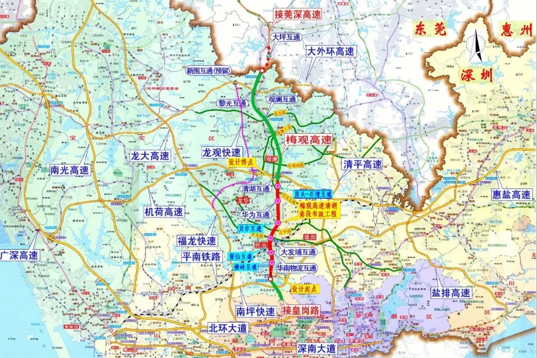 南起原梅林主線收費站南端,北至石清大道與清湖立交之間,與原北線擴建工程起點對接,道路全長約7.975公里。
