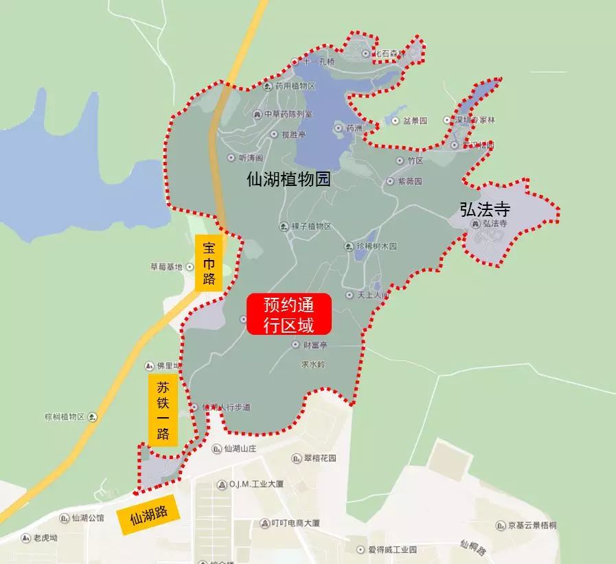 仙湖路(蓮十路東段)及仙湖植物園,含仙湖植物園正門立體停車樓,仙湖植物園內弘法寺停車場。