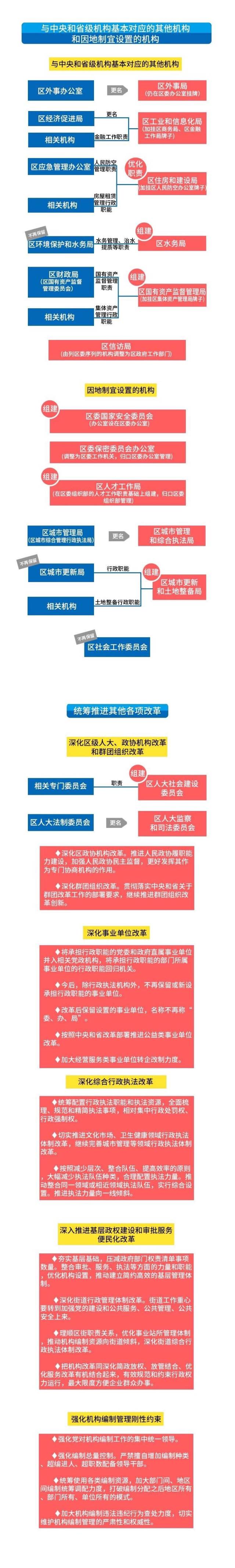 本次區(qū)級機構(gòu)改革,總的要求是中央及省明確的改革任務(wù)要堅決落實到位,主要機構(gòu)設(shè)置同省、市保持基本對應(yīng)。同時,又充分體現(xiàn)地方機構(gòu)綜合設(shè)置的特色,以推進黨政機構(gòu)職能優(yōu)化協(xié)同高效為著力點,改革機構(gòu)設(shè)置,優(yōu)化職能配置,深化轉(zhuǎn)職能、轉(zhuǎn)方式、轉(zhuǎn)作風(fēng),提高效率效能,積極構(gòu)建系統(tǒng)完備、科學(xué)規(guī)范、運行高效的機構(gòu)職能體系,構(gòu)建簡約高效的基層管理體制。