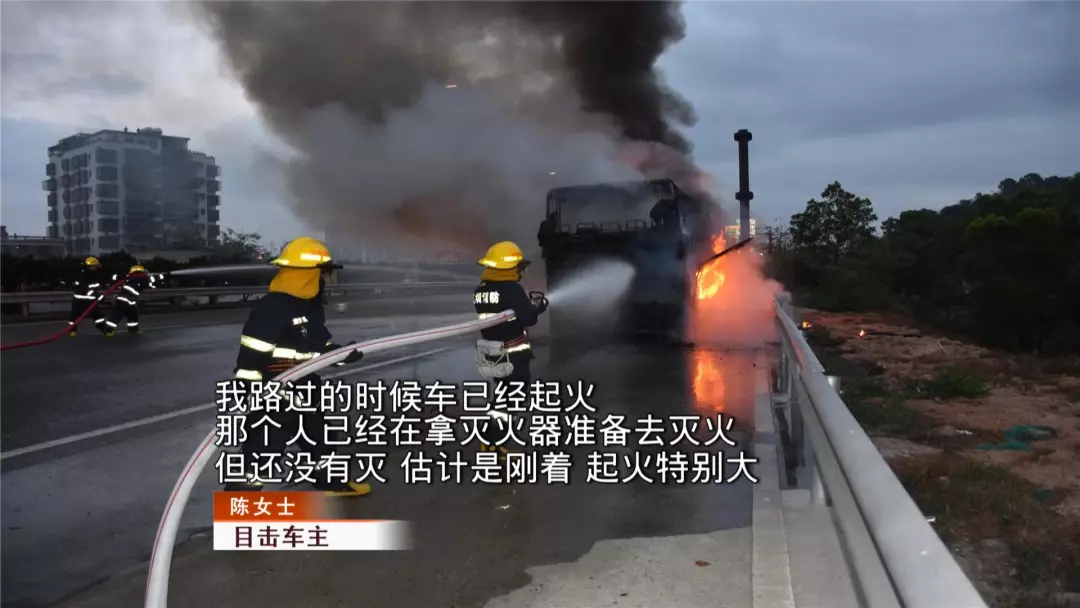 由于陳小姐及時(shí)報(bào)警,石巖消防中隊(duì)官兵在起火不久后便到達(dá)現(xiàn)場(chǎng)。到場(chǎng)后,消防立即要求還在救火的兩名司機(jī)撤離。