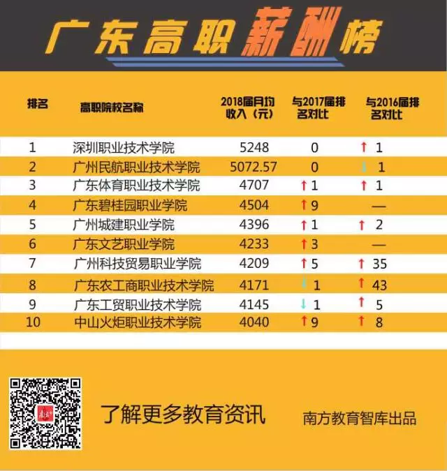 ▲廣東高職薪酬10強(qiáng),深職院、廣州民航平均月薪超5000元,超過(guò)不少本科院校。