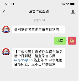 隨便輸入字符后,公眾號提醒,“車輛六年免檢今日到期”要求登錄官網(wǎng)線上年審。