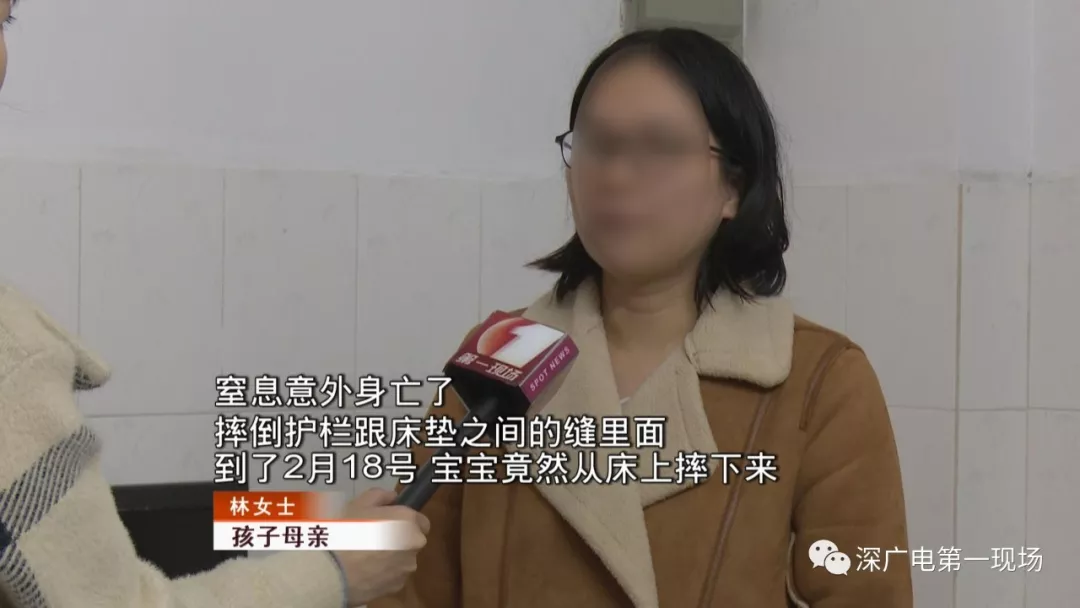 深廣電第一現(xiàn)場2019年2月26日訊 做為保護(hù)孩子的一道安全枷鎖,相信很多爸爸媽媽都會在床沿上安裝防護(hù)欄,然而讓寶安的林女士沒想到的是她的孩子卻因為安全防護(hù)欄意外窒息身亡。