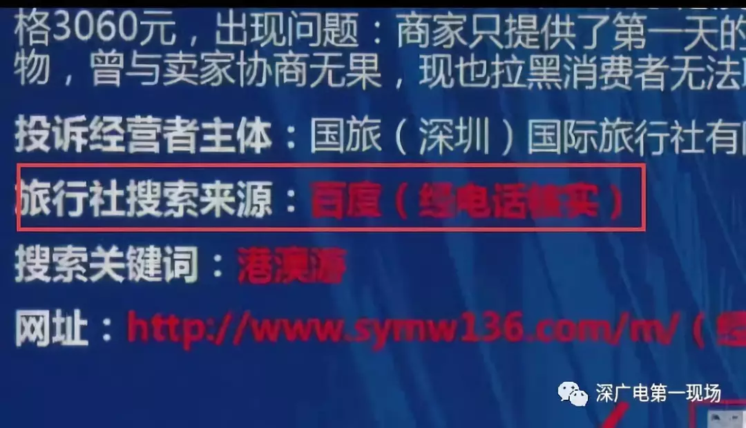 深圳市消委會調查發(fā)現(xiàn),搜素“港澳游”、“國旅”等關鍵詞時,搜索頁面會出現(xiàn)加V等級認證的旅行社廣告信息,但經核實,“深圳信用網”商事主體登記信息中并無該企業(yè)。