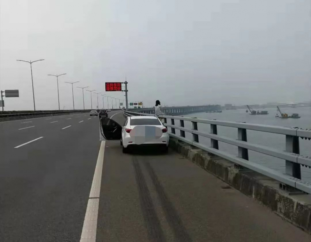 當(dāng)深圳交警趕到現(xiàn)場時,見到該女子情緒異常激動疑有跳橋輕生之舉,橋下便是滔滔江水,現(xiàn)場情況十分危急。