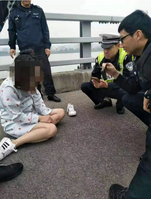 一女子情緒激動欲跳橋,深圳民警箭步上前將其抱下!