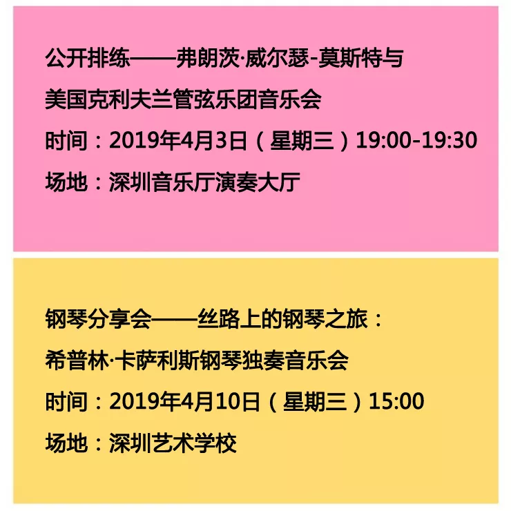 主體活動星光燦爛,延展活動眾星拱月,優(yōu)惠購票、免費招募、免費參與靜等你來!參與方式可關(guān)注“深圳一帶一路音樂季”微信公共號。