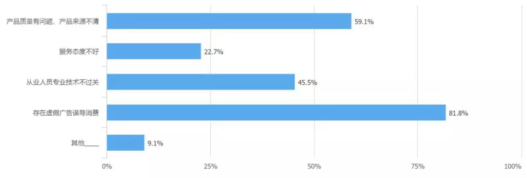 消費者們認為美容美發(fā)行業(yè)中存在最大的問題是虛假廣告誤導消費,第二則是產品質量問題和產品來源不清。