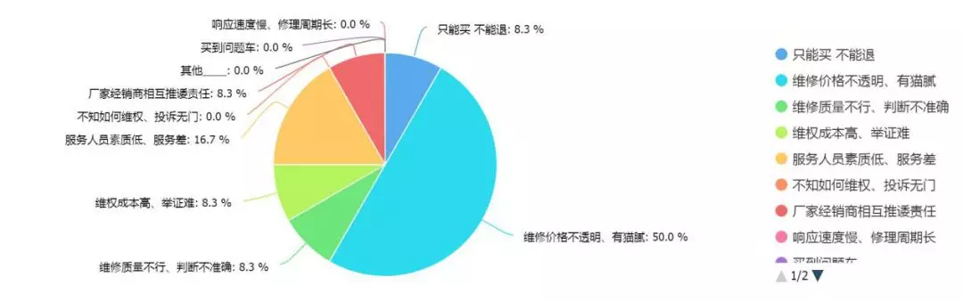 本次調(diào)查問卷顯示,網(wǎng)友覺得汽車質(zhì)量問題集中在發(fā)動機(jī)和車身附件及電器,而在質(zhì)量維修上,有50%的消費者認(rèn)為維修價格不透明、有貓膩,維修保養(yǎng)服務(wù)令消費者最不滿意的部分則是久修不愈。