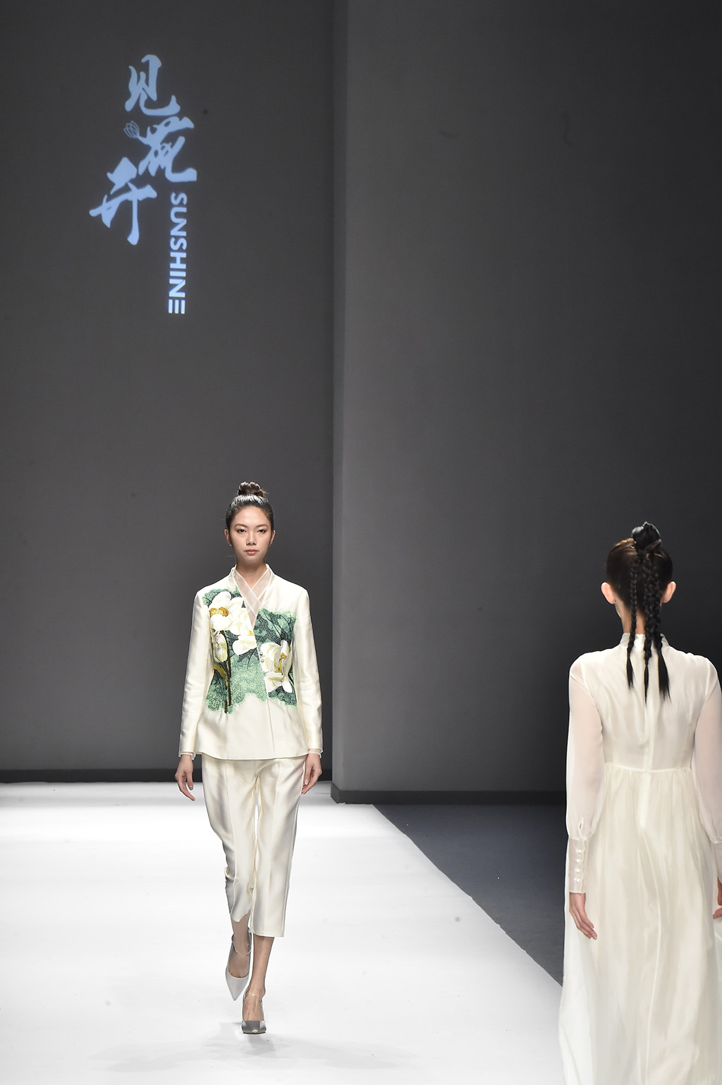 模特正在展示品牌Sunshine見花開的服裝花朵作為設(shè)計的一部分凸顯東方美感