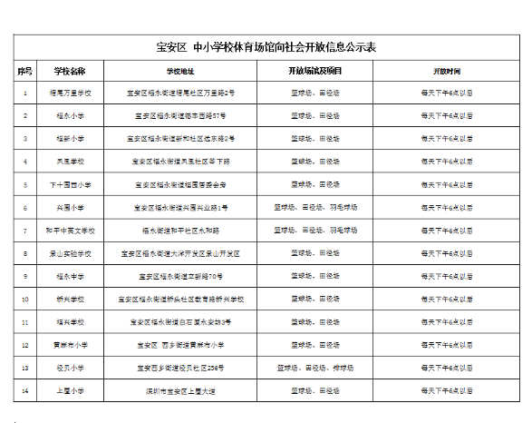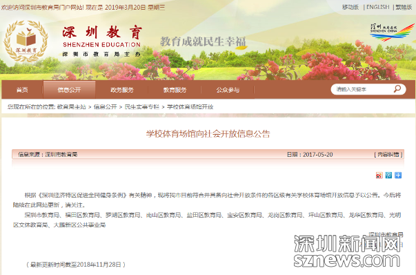 深圳市教育局關于學校體育館向社會開放的信息公告