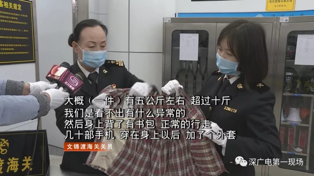 今年1月24號(hào),一群學(xué)童從香港放學(xué)歸來(lái),其中5名學(xué)童在文錦渡口岸入境時(shí),安全檢測(cè)門(mén)突然報(bào)警,引起了海關(guān)關(guān)員的注意,經(jīng)過(guò)檢查發(fā)現(xiàn),這五名學(xué)童身上都穿了一件特制背心,背心里面有多個(gè)夾層,每個(gè)夾層里面都放著手機(jī)、口紅、面膜等走私品。
