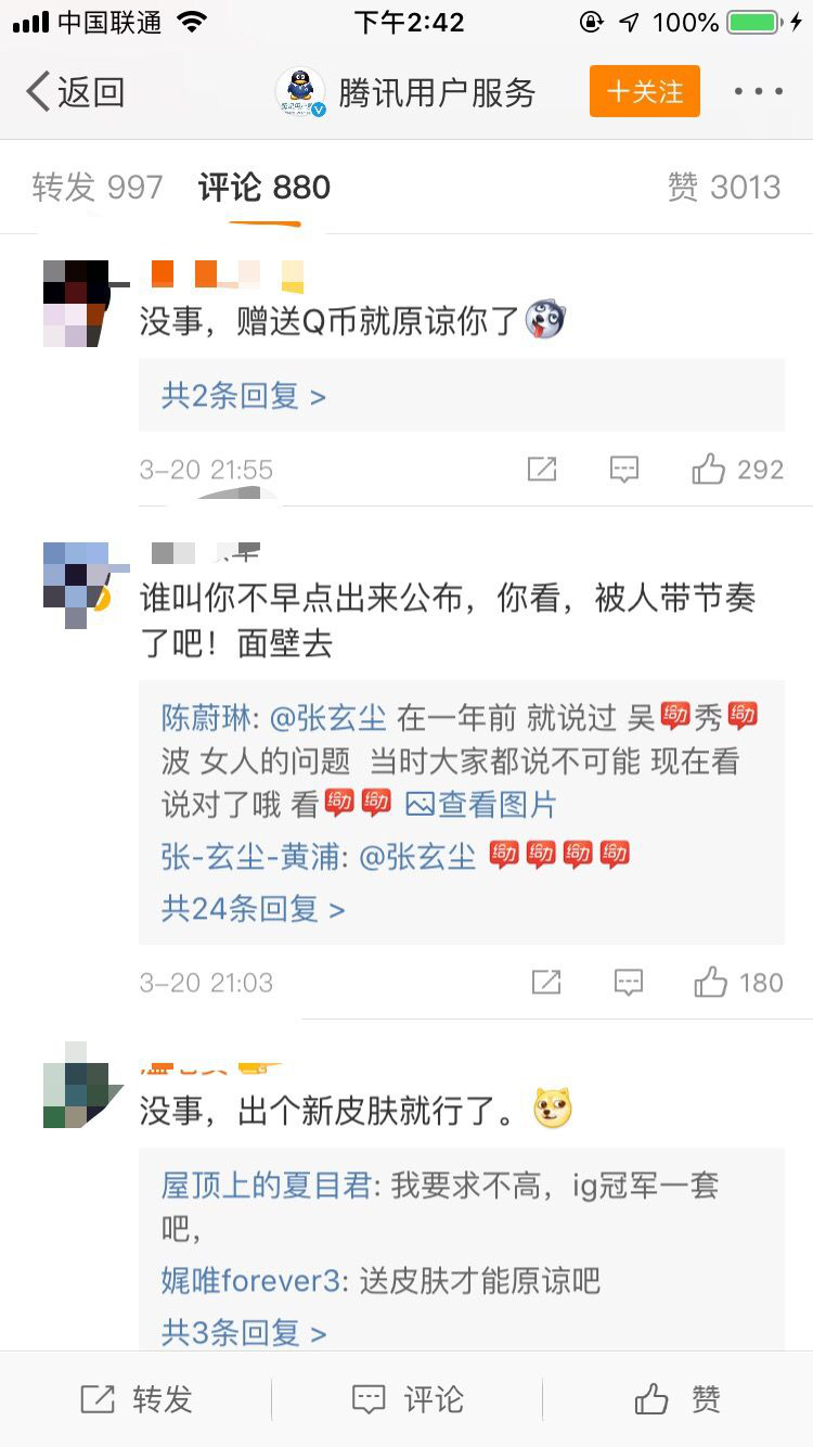 3月20日,微博認(rèn)證為騰訊公司公關(guān)總監(jiān)張軍在微博中解釋:因去年年底的一次活動(dòng)中的相關(guān)描述不夠清晰,目前已遵照要求完成整改。未來我們將在工作中引以為戒,避免類似問題再次出現(xiàn)。