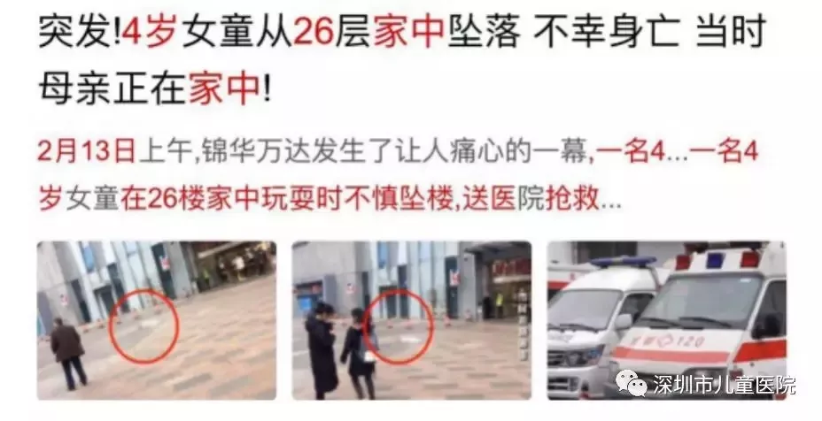 2月13日,四川成都,一名4歲女孩在26樓的家中玩耍時不慎墜樓,送醫(yī)搶救無效死亡。據(jù)了解,看護孩子的母親當(dāng)時正在上廁所,臥室窗戶沒有安裝防護欄,孩子玩耍時不慎掉下樓層。