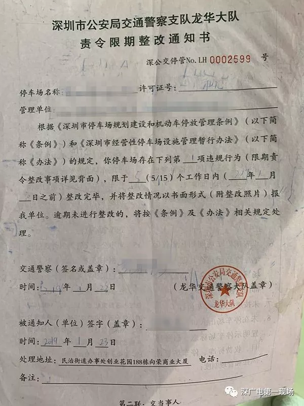 根據(jù)《深圳市停車場(chǎng)規(guī)劃建設(shè)和機(jī)動(dòng)車停放管理?xiàng)l例》和《深圳市經(jīng)營(yíng)性停車場(chǎng)設(shè)施管理暫行辦法》的規(guī)定龍華交警依法沒收該停車場(chǎng)非法所得51182元,處罰款5000元,并開具整改通知書,要求該酒店限期內(nèi)進(jìn)行整改。