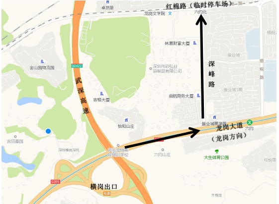 3、自龍崗出發(fā)路線:往龍崗大道羅湖方向行駛,在深峰路路口右轉(zhuǎn)進入,經(jīng)深峰路進入紅棉路臨時停車場,轉(zhuǎn)乘接駁大巴。