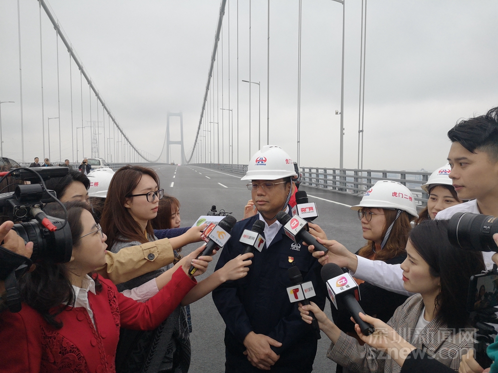 虎門二橋項目營運負(fù)責(zé)人高嚴(yán)廣(中)介紹虎門營運情況