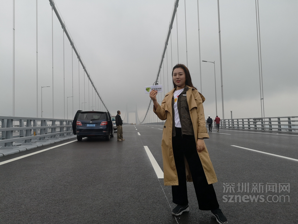 深圳新聞網(wǎng)記者劉彥蘭在虎門(mén)二橋的直播工作照