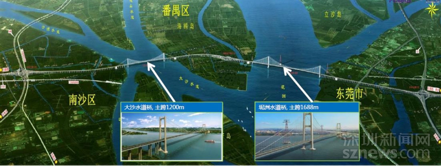 由廣東省交通集團(tuán)投資建設(shè)的虎門二橋項(xiàng)目,全長12.89公里,雙向八車道,設(shè)計行車速度為100公里每小時,設(shè)計使用壽命100年。路線起于廣州市南沙區(qū)東涌鎮(zhèn),順接國道主干線廣州繞城高速公路南環(huán)段,同時與廣珠北線高速公路連接,經(jīng)廣州市南沙區(qū)、番禺區(qū)、先后跨越珠江大沙水道、海鷗島、坭洲水道后,穿越虎門港進(jìn)入東莞市沙田鎮(zhèn),終點(diǎn)與廣深沿江高速公路相接,并預(yù)留與規(guī)劃中的河惠莞高速公路接口。