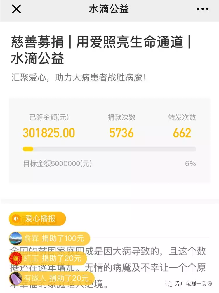 20元、50元、100元,平臺(tái)上善款籌集信息在愛(ài)心廣播上滾動(dòng)著。截止4月2日晚上7點(diǎn)半,捐款次數(shù)超過(guò)了5736多次,轉(zhuǎn)發(fā)次數(shù)也達(dá)到了6百多,在大家一次次的愛(ài)心匯聚下,目前籌款已經(jīng)超過(guò)了30萬(wàn)元。