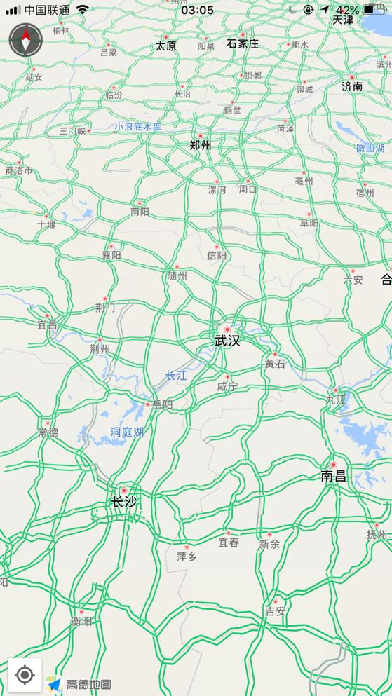 凌晨2點(diǎn)58分,北京周邊,高德地圖上看,一片綠色,讓人覺得特別舒服。