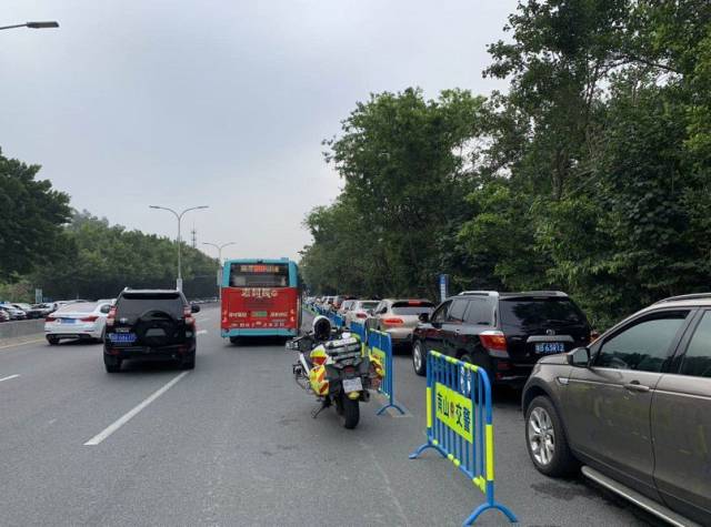 4月5日上午平峰期間,前往鳳凰山景區(qū)車(chē)流量激增,進(jìn)園、出園車(chē)流量大,為保證進(jìn)園車(chē)流量在可控范圍,深圳交警現(xiàn)場(chǎng)管制并設(shè)置臨時(shí)方案,分流入園車(chē)輛,緩解景區(qū)周邊道路交通壓力。
