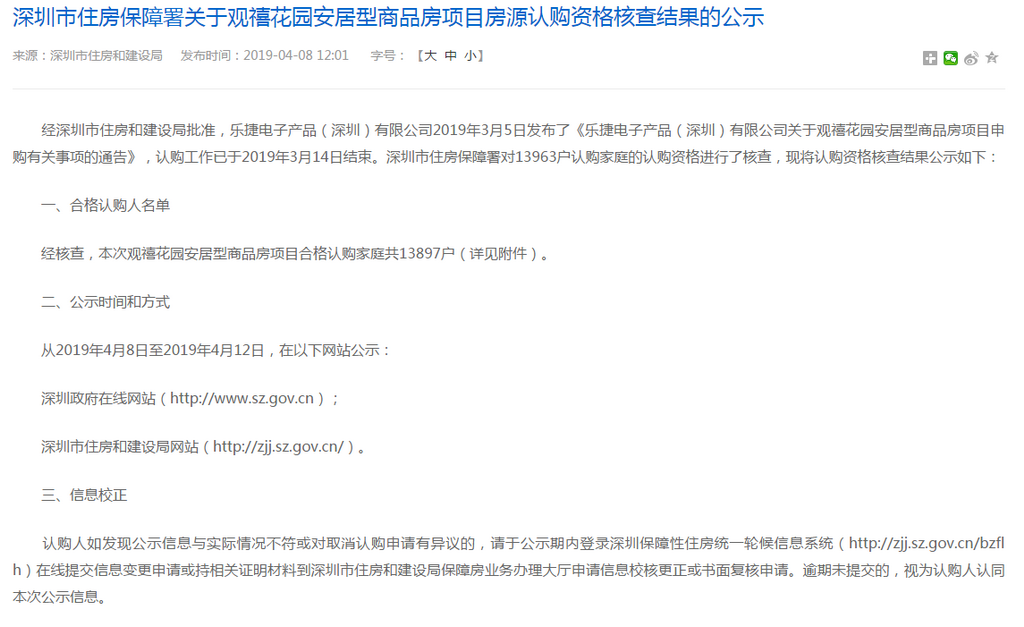 觀禧花園安居房合格認(rèn)購名單出爐!每平1.5萬可在深安家