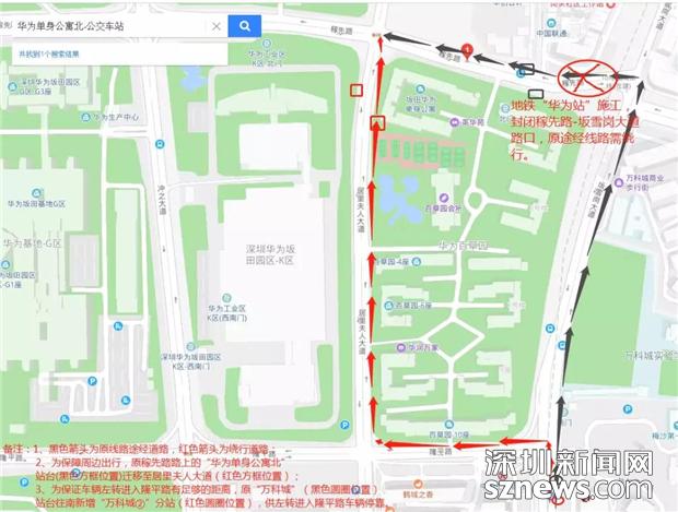 最近,受“華為”地鐵站施工影響有22條公交線路調(diào)整繞行