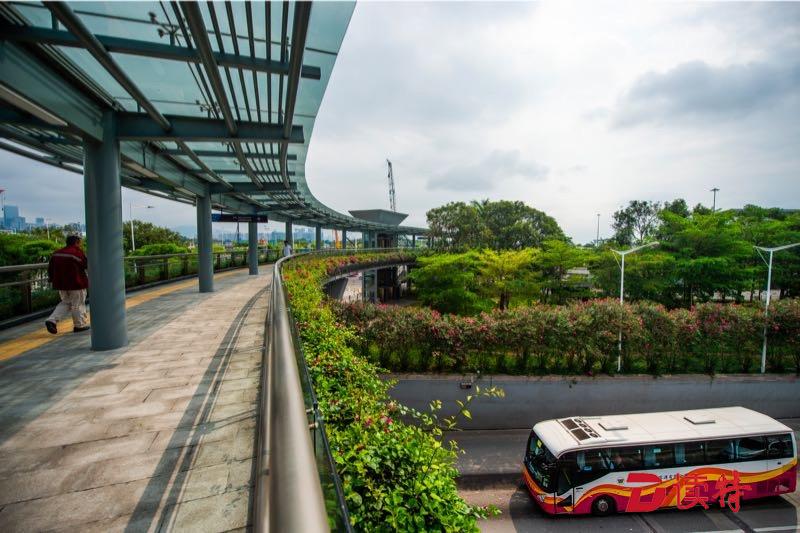 深圳特區(qū)報2019年04月14日訊 在深圳灣口岸,一座全長310米的藍(lán)色S型人行天橋橫空出世,連通口岸公交站、停車場、海關(guān)大樓和聯(lián)檢大樓。這座天橋已經(jīng)正式建成啟用,為市民提供更安全舒適的出行環(huán)境。天橋兩側(cè)種植的簕杜鵑已經(jīng)盛開,行走在天橋上宛若漫步景觀長廊。