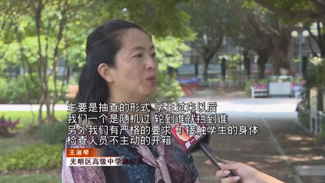 光明區(qū)高級中學(xué)副校長王淑琴:“我們德育處將進(jìn)一步做好宣傳工作,做好一些方案,告訴學(xué)生這樣做的目的是什么,讓學(xué)生從心里支持我們這項(xiàng)工作。另外我們也會進(jìn)一步完善我們所有的環(huán)節(jié),嚴(yán)格規(guī)范,按照法律法規(guī)的要求去進(jìn)行這項(xiàng)工作?!?/p>