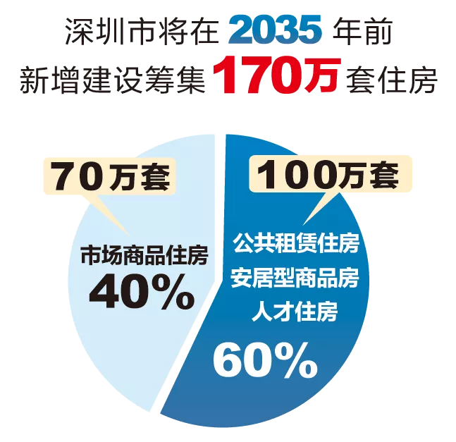 市住建局相關(guān)負(fù)責(zé)人介紹,2018年8月,市政府出臺了《關(guān)于深化住房制度改革加快建立多主體供給多渠道保障租購并舉的住房供應(yīng)與保障體系的意見》(以下簡稱“主文件”)。新時代,深圳市將針對不同收入水平的居民和專業(yè)人才等各類群體,著力構(gòu)建多層次、差異化、全覆蓋的住房供應(yīng)與保障體系,努力實現(xiàn)全體市民住有所居?!爸魑募碧岢錾钲谑袑⒃?035年前新增建設(shè)籌集170萬套住房,其中:市場商品住房70萬套,占40%左右;公租房、安居型商品房和人才住房共100萬套,占60%左右。