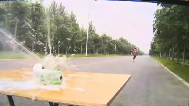 ↑記者網(wǎng)購彈弓做了個試驗,對著易拉罐射出,三瓶直接懟穿