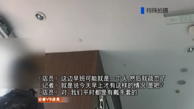 這名店員隨后也急忙戴上了手套!