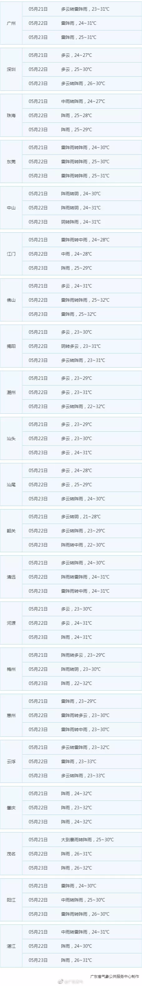 從20日開始,一股南下的弱冷空氣進入廣東,與連日的高溫、高濕空氣相遇,給廣東多地帶來降雨,同時伴隨降溫。