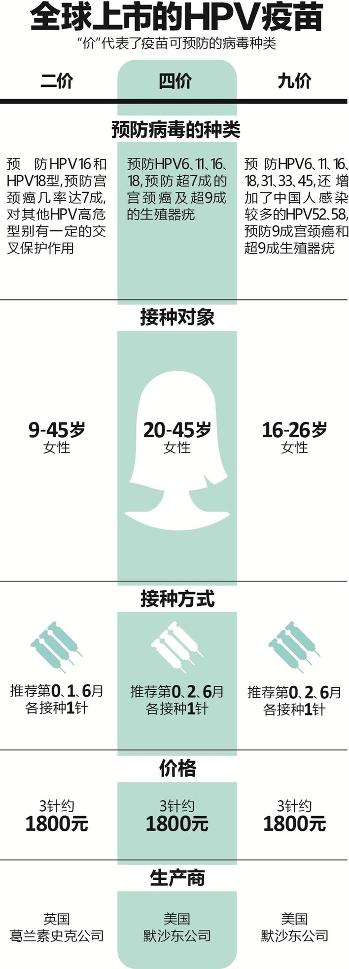目前,國際上廣泛使用的 HPV疫苗有3種,分別為二價、四價、九價HPV。深圳每針HPV九價疫苗的價格為1323元,加上每針25元的注射費,三針下來總花費在4000出頭。不過與香港HPV九價疫苗規(guī)定“9歲或以上之女性及男性(沒年齡上限)”均可接種不同,深圳HPV九價疫苗的搖號年齡限定為16-26.5歲的女性。據(jù)了解,在理想情況下,疫苗應(yīng)該在首次性行為(即暴露于HPV感染危險)之前給予。年齡越大的女性因有性行為增大了HPV病毒感染的幾率,而HPV疫苗對于已感染的HPV病毒無治療作用,只能預(yù)防未感染的HPV病毒,因此疫苗免疫會比未感染病毒的女性低。