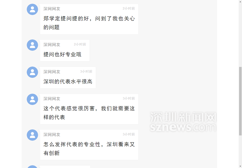 大講堂期間,網(wǎng)友涌入直播頁(yè)面以留言的方式對(duì)深圳市人大代表大講堂貼近民生的選題表示肯定,不少人大贊深圳市人大代表臥虎藏龍,不光主講嘉賓朱聞博有能力,提問的四個(gè)代表(李繼朝、鄭學(xué)定、肖幼美、黃翔)也非常有水平,問到了點(diǎn)子上,“希望代表和專家碰撞出火花,讓深圳的明天更美好”。