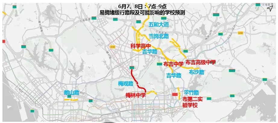 今年端午假期適逢高考,6月7日-8日8:30-12:00、14:30-17:30時段內(nèi)考場周邊路段車輛集中,尤其羅湖區(qū)、福田區(qū)交通壓力較大,梅觀路、沿河南路、布心路、福龍路、留仙大道及景田路等部分道路易出現(xiàn)擁堵,建議市民綠色出行,及時留意交通管制措施,合理規(guī)劃線路。此外,途徑考點(diǎn)周邊區(qū)域時請勿亂鳴喇叭,共同為考生營造良好的考試環(huán)境。