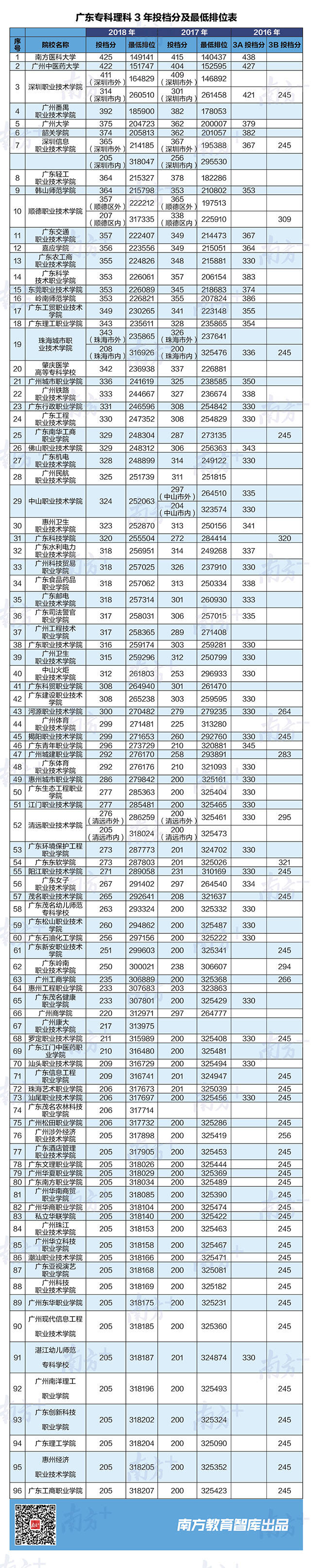 統(tǒng)計(jì)3年數(shù)據(jù)文理科情況發(fā)現(xiàn),在高職高專學(xué)院中,深圳職業(yè)技術(shù)學(xué)院、廣州番禺職業(yè)技術(shù)學(xué)院、深圳信息職業(yè)技術(shù)學(xué)院、廣東輕工職業(yè)技術(shù)學(xué)院、順德職業(yè)技術(shù)學(xué)院連續(xù)多年穩(wěn)居招生前5位。