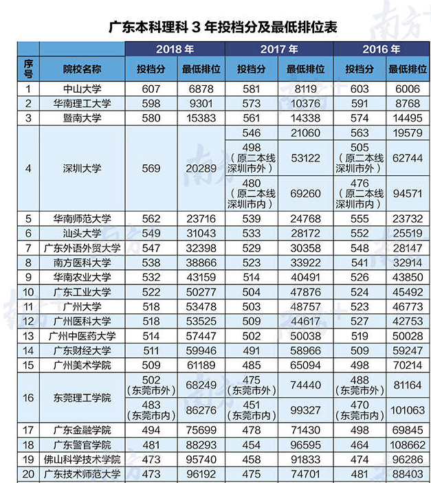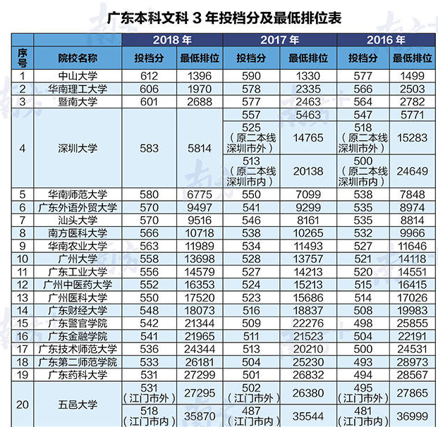 只能給大家找來(lái)廣東本科文理科3年投檔分和最低排位表?。ú糠郑?/p>