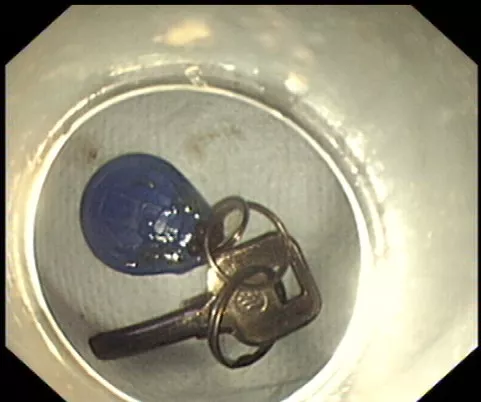 醫(yī)生準備在胃鏡下取出鑰匙,不料,因鑰匙太大在常先生喉嚨附近食管入口處卡住了,取不出來,最后,醫(yī)生決定給常先生做無痛胃鏡,麻醉后,常先生食管入口處肌肉松弛,鑰匙終于順利取出!。
