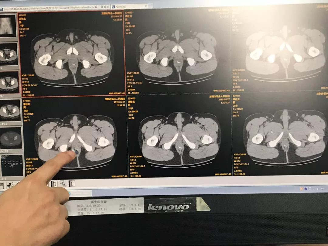 果然,經(jīng)過專科檢查和盆腔CT檢查黃某被診斷為:直腸異物嵌頓。