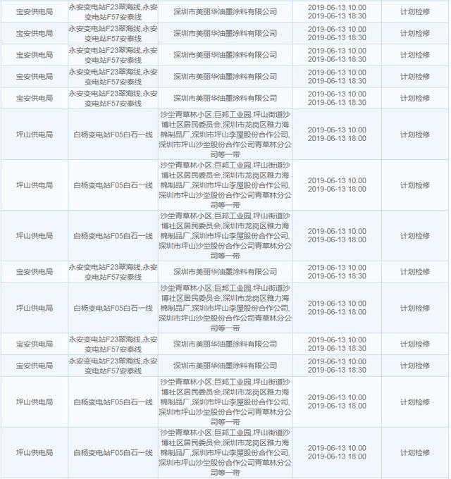 【6月13日停電計(jì)劃】