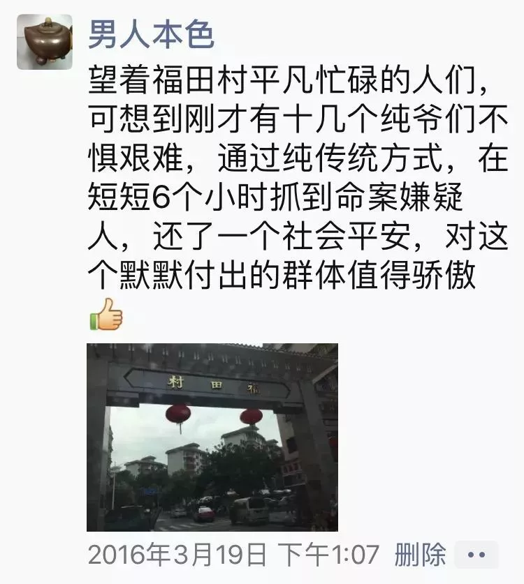 ▲福田派出所輔助人員朱峰朋友圈