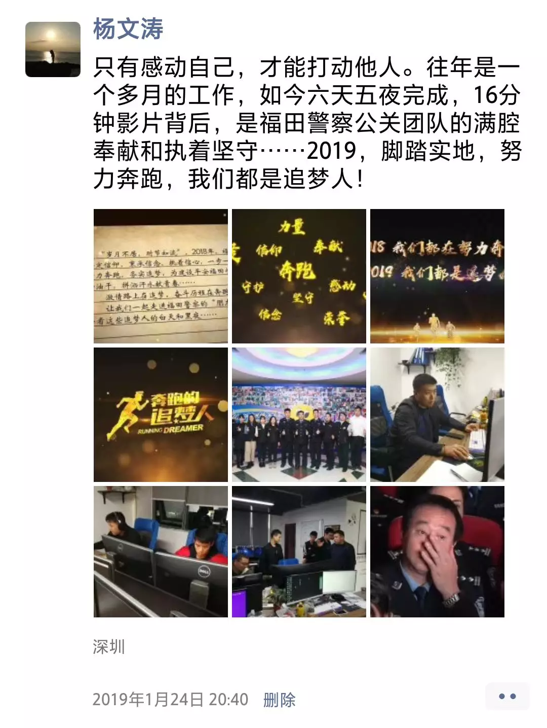 ▲福田派出所民警吳偉朋友圈