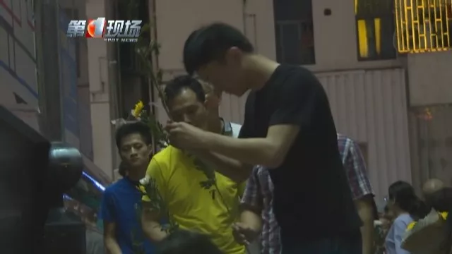 晚上7點30分,大家在有序組織下,排成一隊,逐一走到花籃前,放下手中的鮮花,雙手合十,并鞠躬致意。