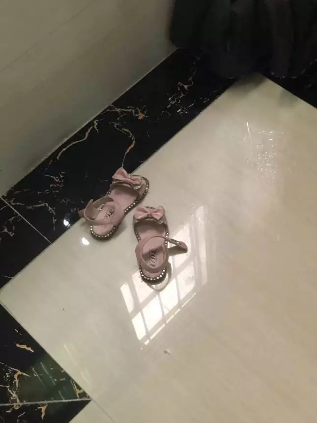 ▲疑似墜樓女孩留在3樓門外的鞋子
