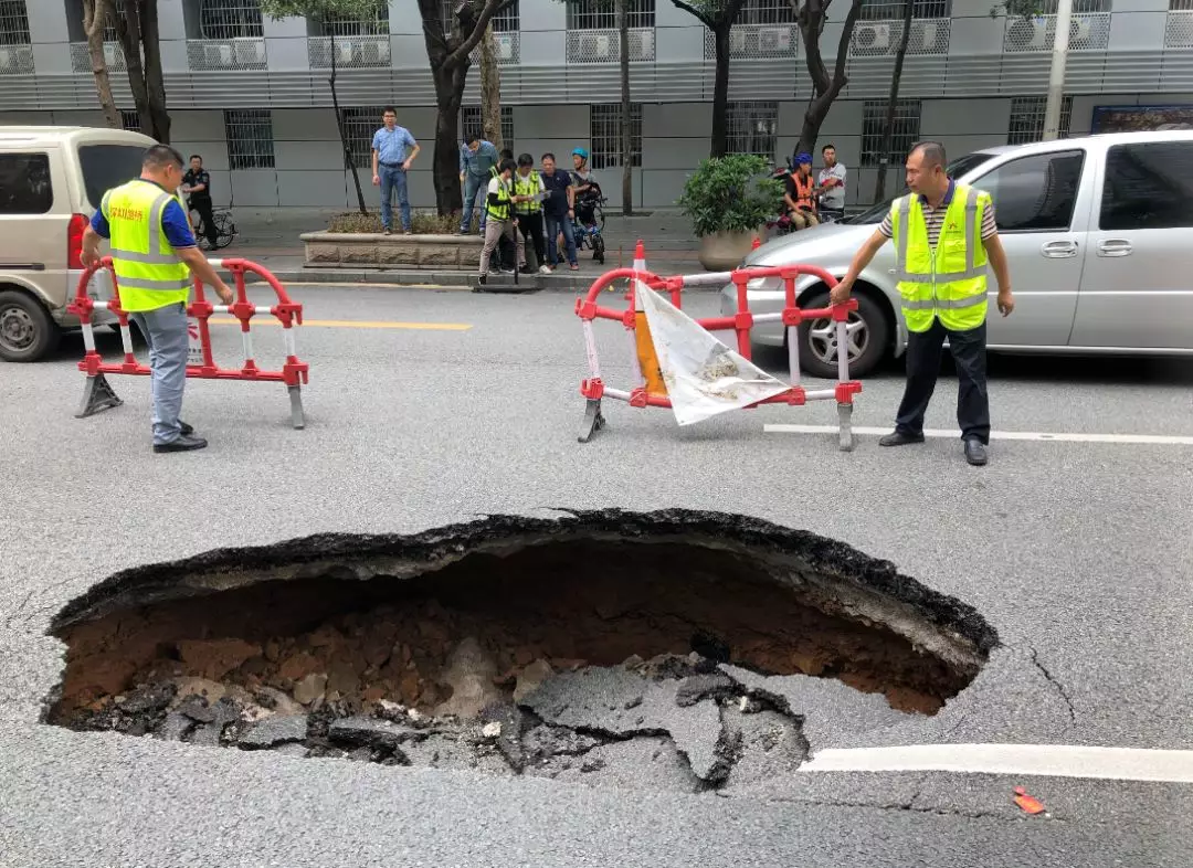 經(jīng)過排查,周圍的管道并沒有出現(xiàn)破損,塌陷原因還有待進一步調查,由于塌陷道路周邊出現(xiàn)裂痕,該路段封閉兩條車道,留有兩條可通行,建議晚高峰期間司機繞行。