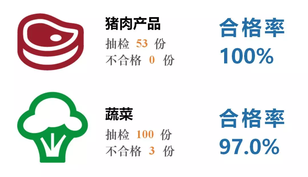 共抽檢53份豬肉和100份蔬菜