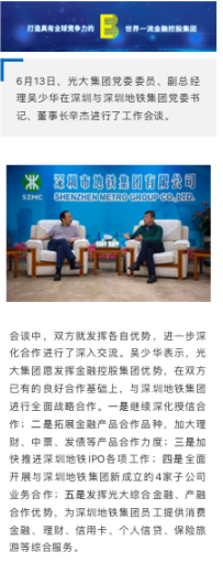 它發(fā)文稱:光大集團(tuán)正在與深圳地鐵加快推進(jìn)深圳地鐵IPO各項(xiàng)工作