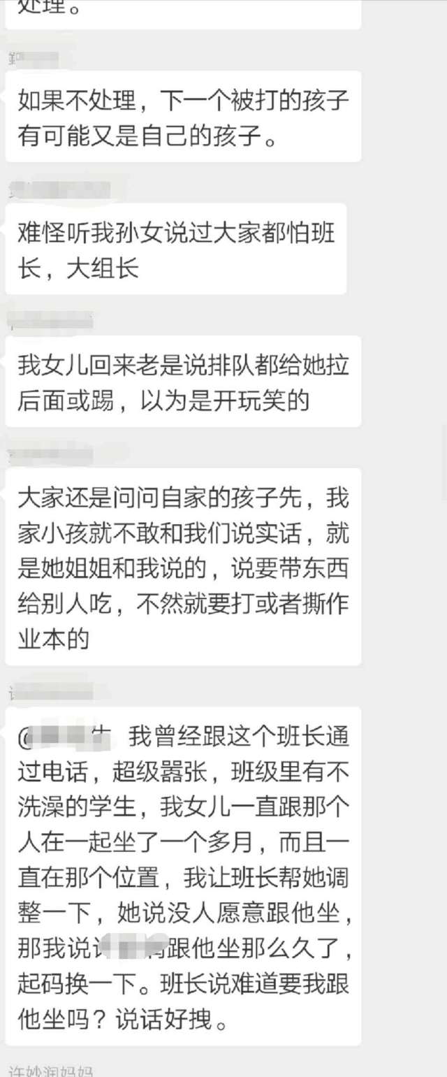 王先生把女兒的情況反映到家長群里,結(jié)果群里的家長紛紛表示,自己的孩子也反映當(dāng)天遭遇到班長的毆打,有的孩子甚至“腿疼得難以走路”。